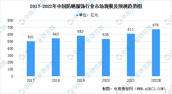 目前,中國防曬服飾市場規(guī)模已接近675億元。/中商情報網(wǎng)