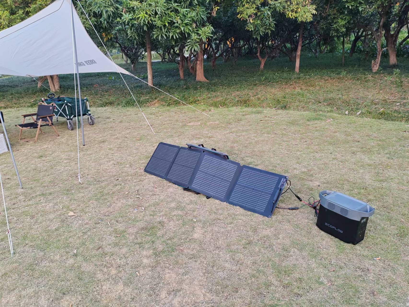 當(dāng)然,再強(qiáng)大的戶外電源,也經(jīng)不起多天的折騰,荒郊野外如何補(bǔ)充電量?太陽能電池板也必須安排上,所以后來也入手了ECOFLOW 正浩110W太陽能電池板。