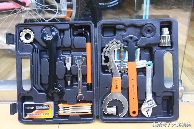 一般工具會(huì)包含了常用的內(nèi)六角,補(bǔ)胎工具,小型打氣筒,膠水等等,功能齊全,適合入門(mén)使用。