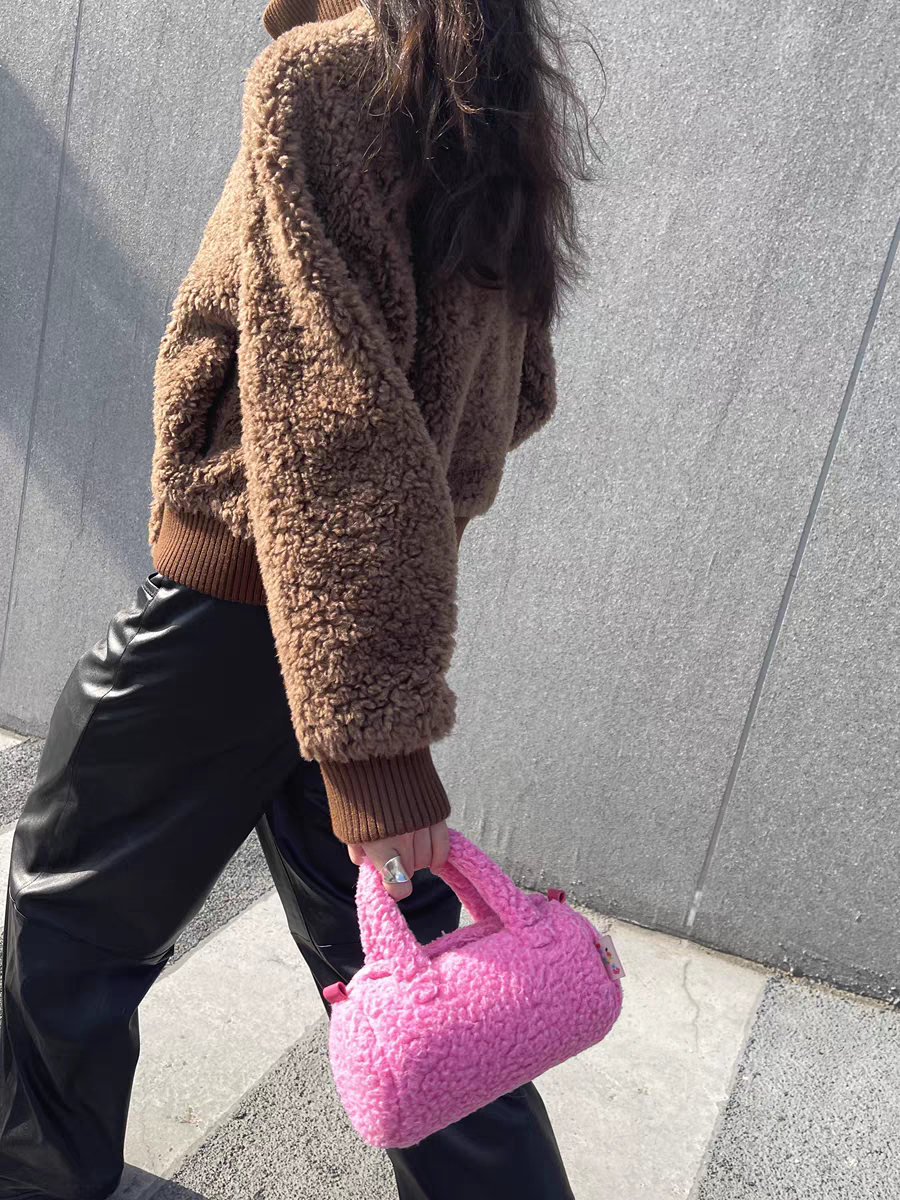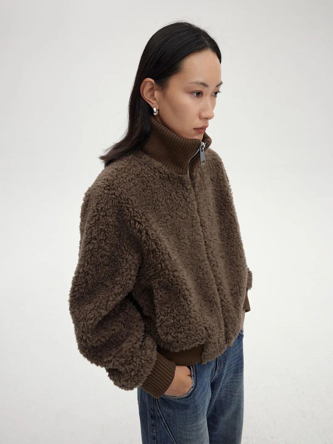 RandomPiece2022這款全羊毛麂皮絨的短款夾克,有點像棒球服的款式,上身蠻減齡的。
