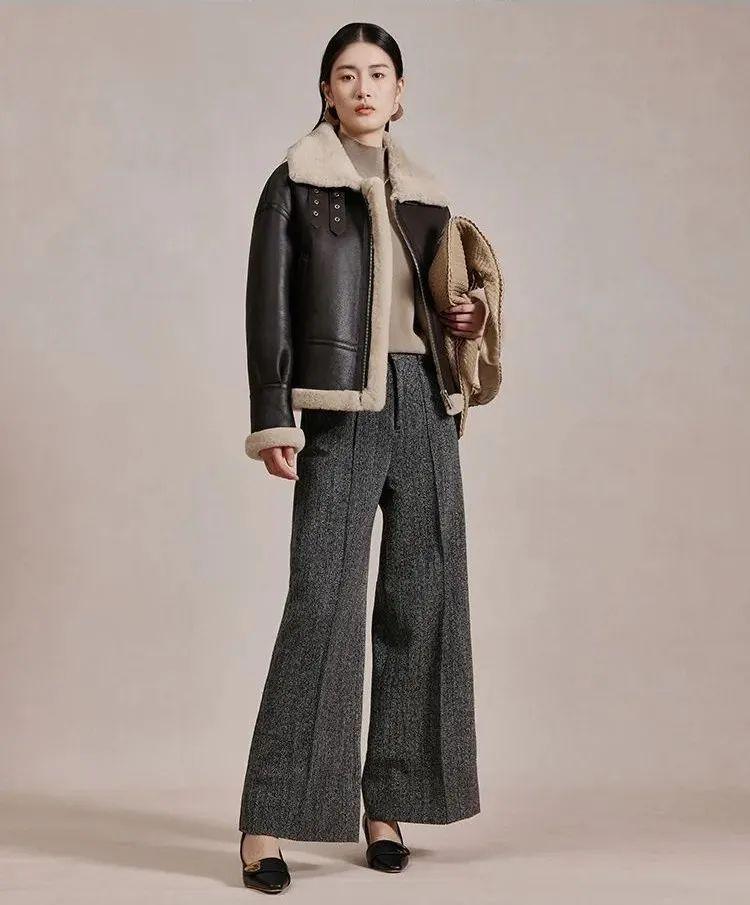 風度與溫度兼?zhèn)涞臋C車皮外套,既擁有毛絨材質(zhì)的柔和感,還具備機車皮衣的帥氣屬性,兩種沖突元素的材質(zhì)碰撞,頗具時尚態(tài)度。