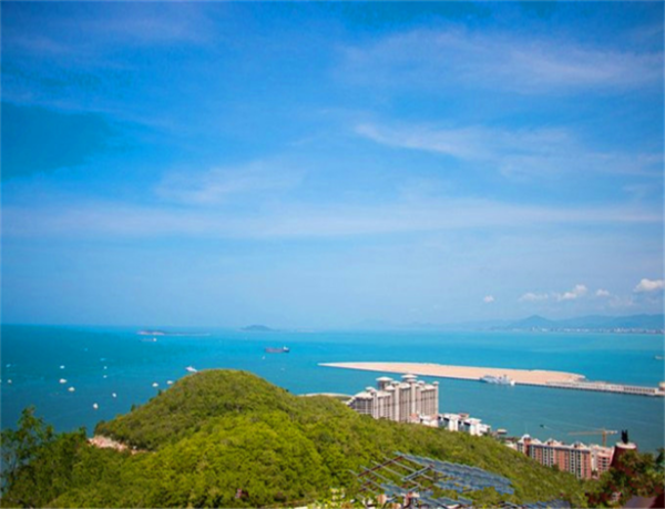 山下,遠(yuǎn)遠(yuǎn)的,典型的代表建筑是鳳凰島,高高的聳立在水的中央,像是亭亭玉立的佳人一樣,站在山頂,整片三亞的景色盡收入眼底,景色的壯觀