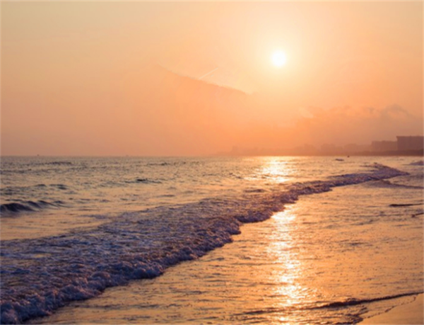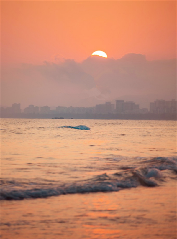 這大概也是我第一次看見這樣美的海邊夕陽,太陽緩緩的落下去,然后在云層中有種猶抱琵琶半遮面的美麗,海面上平靜的泛起浪花,有種大江東去浪淘盡的歷史感和沉靜感