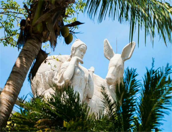 鹿回頭因一個(gè)美麗動(dòng)人的傳說而得名。"鹿回頭"也因此名揚(yáng)于世?,F(xiàn)在,鹿回頭山頂已建設(shè)成一座美麗的山頂公園,并根據(jù)美麗的傳說在山上雕塑了一座高12米、長9米,寬4.9米的巨石雕像。三亞市也因此被人們稱為"鹿城"。