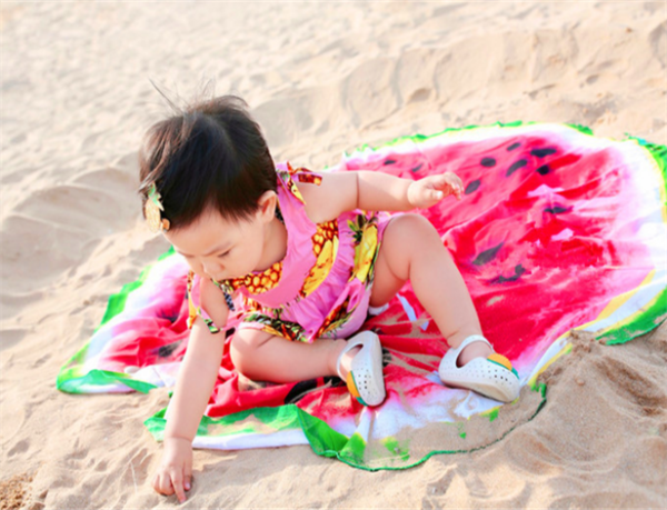 這是小茶茶第一次看見大海,她剛開始還歡欣雀躍的睜大眼睛,好奇的看著這片深深的水,很快的就自己玩起來了,我們也在路上會(huì)買了一些挖沙工具,這讓她可以短暫的脫離我們的懷抱,而去跟大自然親近親近,值得注意的是,這個(gè)時(shí)候爸爸媽媽還是要跟在一旁的哦,不然的話,孩子摔倒或者有陌生人都會(huì)很無助的
