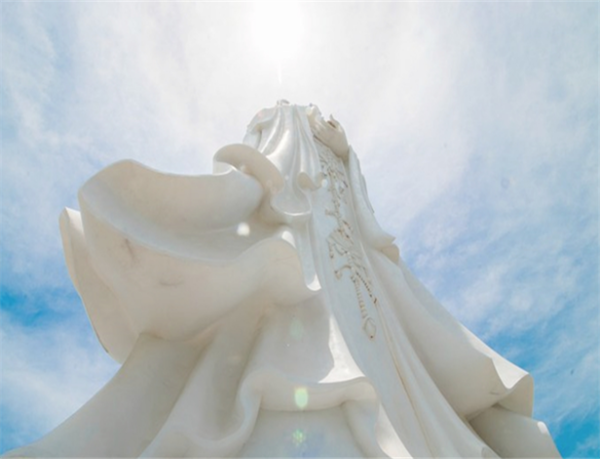 遠(yuǎn)遠(yuǎn)的就瞧見這美麗的南海觀音,據(jù)說觀音是有108米的傲人身高的,在觀音的腳下,我們都成了茫茫人海的小小螻蟻,但是卻也是這小小的人類,也塑造了觀音這樣精致圣潔的造像