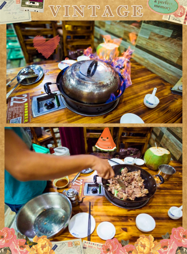 晚上,我們的晚餐是椰子雞,因?yàn)榍Ч徘槭侵形绮砰_園,所以我們早上起的很晚,悠悠閑閑的更像是度假,也像是一個(gè)地道的海南人,不緊不慢,慢慢悠悠