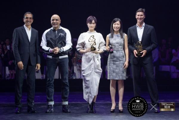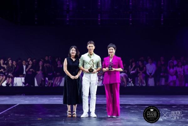 滋源代表與邢昭林一同領(lǐng)取“年度優(yōu)選護發(fā)素”獎