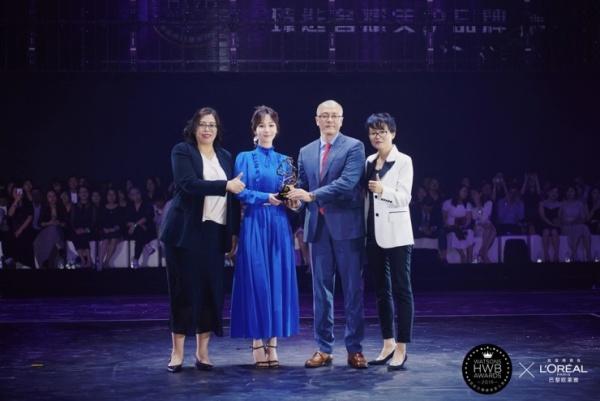 巴黎歐萊雅代表與楊紫共同領(lǐng)取“年度閃耀大獎?wù)檫x奢耀美護品牌”
