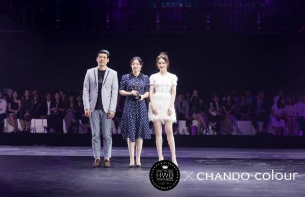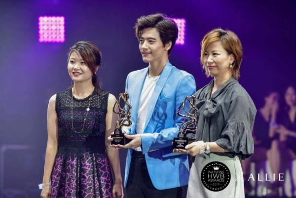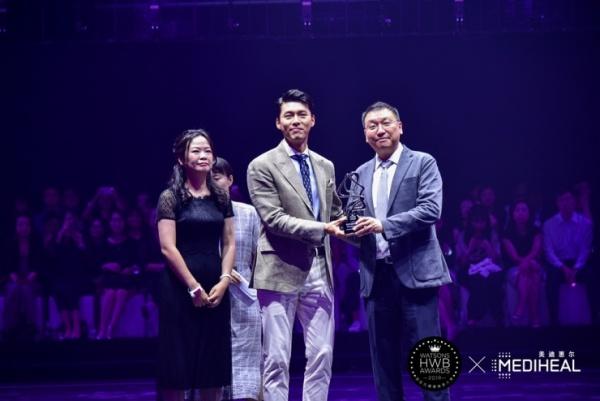 美迪惠爾代表與玄彬一同領(lǐng)取“年度卓越美白保濕黑面膜”獎