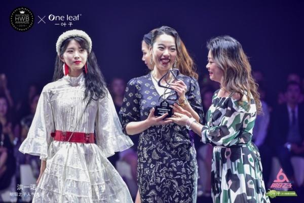 一葉子代表與洪一諾一同領(lǐng)取“年度優(yōu)選補水面膜”獎