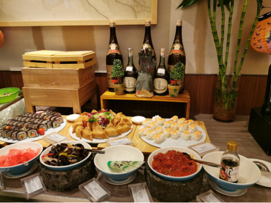 我們選的套餐里面包含了早餐自助和晚餐自助。酒店的番紅花和七彩晶是自助餐廳,早餐和晚餐的自助會(huì)根據(jù)餐廳的運(yùn)營(yíng)情況來決定,每餐會(huì)開其中的一家。自助餐廳的菜品種類很多,特別豐富,食材也很新鮮,口味上有清淡的也有辣的,西式、中式、正餐、小點(diǎn)全部都有,完全能照顧不同的口味喜好。