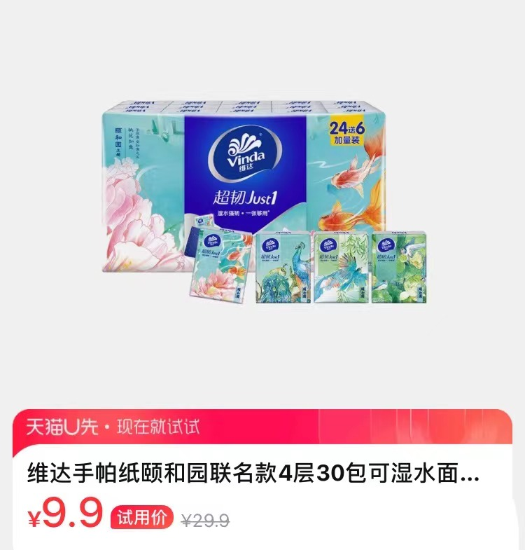維達(dá) 頤和園聯(lián)名款手帕紙4層30包 符合9.9元