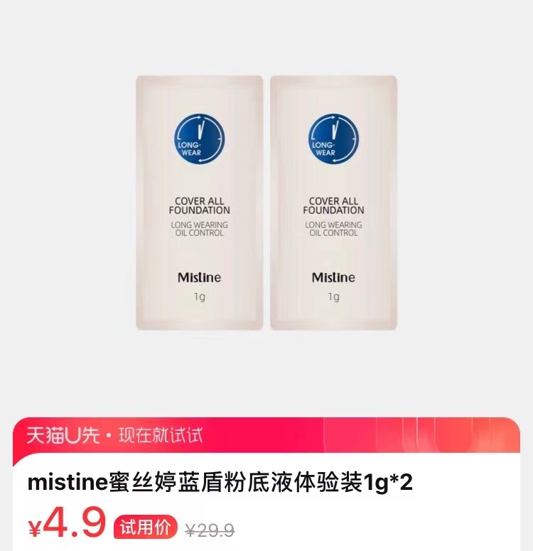 mistine蜜絲汀藍(lán)盾粉底液1g*2 符合4.9元