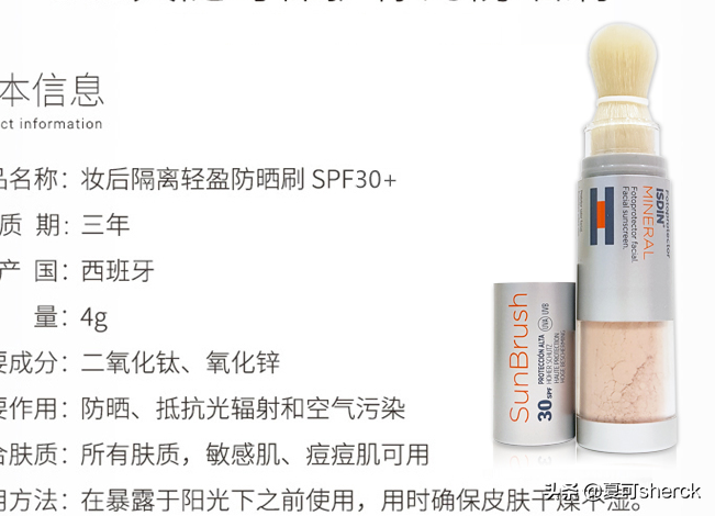 嗯,你說的差不多的。不過這種專業(yè)的防曬刷,里面那些潤色、彩妝型的粉末要少,更多的是物理防曬劑粉末。講過區(qū)別的哈,雖然同樣是二氧化鈦、氧化鋅,但是只有粒級低到一定程度才是防曬劑,不然就是粉而已。