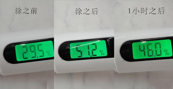 它的保濕效果是好的,我特地用水分測(cè)試儀做了涂之后和之后的對(duì)比。可以很看出,它的水分?jǐn)?shù)值上升了。再過(guò)1個(gè)小時(shí)后再測(cè)試,水分還是處于比較高的狀態(tài),說(shuō)明她的保濕效果是棒的。