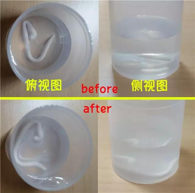 ↑②號自然樂園家的孩子,這個(gè)產(chǎn)品是一開始就沉到水底去的哦!說明它的密度比水大(然后并沒有什么卵用)…靜置一段時(shí)間后,水變得比較渾濁,有大量小絮絮狀物體浮出,防水性一般。