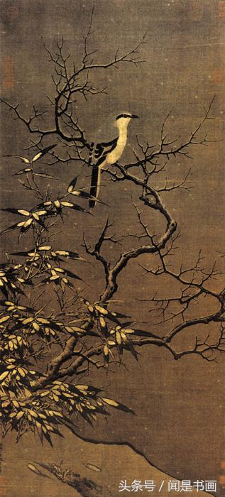 花竹翎毛中也頗多這種孤寒姿態(tài),如宋李迪《雪樹寒禽圖》,枯樹參差,覆以白雪,襯以竹葉,枝杈細勁虬結(jié),上棲一寒鳥,意態(tài)幽閑,似靜靜地承受這冷寒孤獨。
