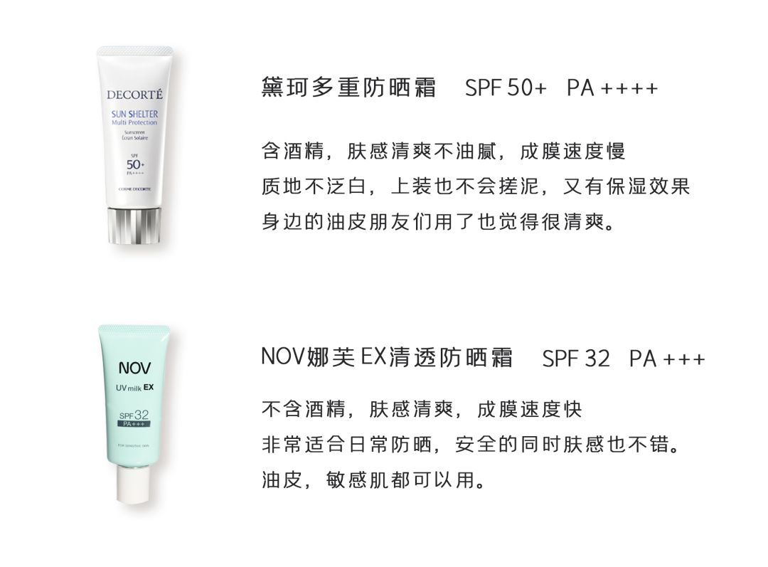 針對不同膚質(zhì)分別給大家?guī)卓罘罆袼耐扑],這些防曬霜大部分都是 300 以下,我覺得性價比不錯的產(chǎn)品。不在乎錢的土豪們,可隨意購買其他有精華成分的高階防曬霜~