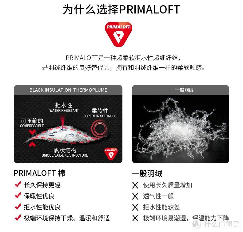 Primaloft就是我們俗稱的“P棉”,這種材料由Albany研發(fā),初是為了讓軍人適應(yīng)惡劣潮濕的作戰(zhàn)環(huán)境。雖說叫做“P棉”,但這種材料與棉沒有半毛錢關(guān)系,它的結(jié)構(gòu)類似羽絨,通過將超細(xì)的中空纖維纏繞在較粗的骨干上面,形成極細(xì)、極柔軟、極復(fù)雜的織物結(jié)構(gòu)。
