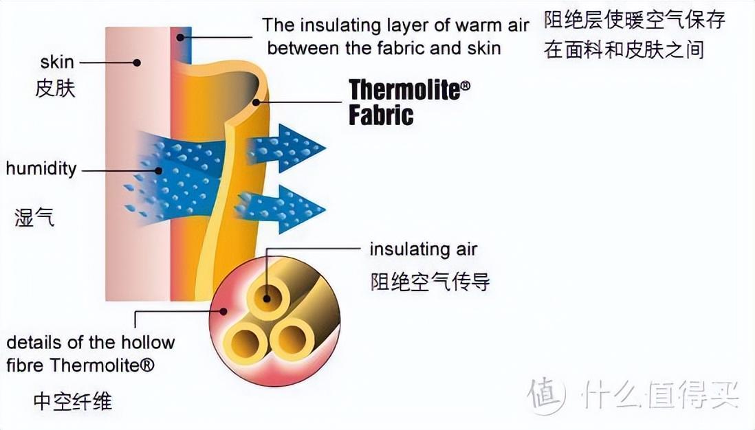 THERMOLITE是INVISTA(英威達(dá))旗下的保暖科技,也有戶外玩家將之稱作“中空棉”。顧名思義,它通過先進(jìn)的紡織梳理工藝,制造出一種具有中空結(jié)構(gòu)的輕量化纖維,這種多層纖維結(jié)構(gòu)能夠形成一道空氣保護(hù)層,在輕便的同時達(dá)到更加出色的保暖透氣效果,常被用來制作戶外裝備、運動服裝等產(chǎn)品。