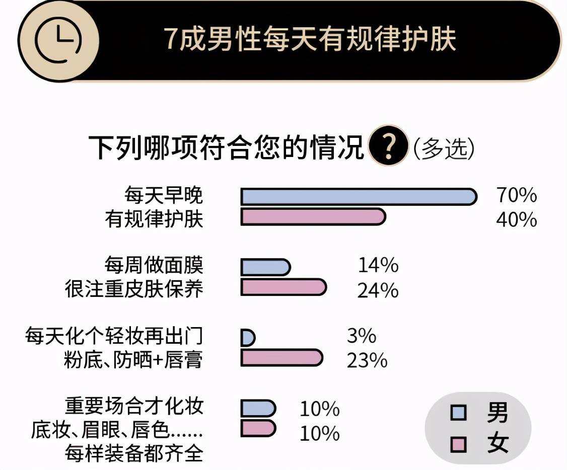 近年隨著國(guó)內(nèi)男性護(hù)膚意識(shí)不斷增強(qiáng),購(gòu)買護(hù)膚品保養(yǎng)早已不是女性的專利了,根據(jù)之前機(jī)構(gòu)的調(diào)研數(shù)據(jù)顯示,超過7成男性每天都在護(hù)膚,而相比之下能每天堅(jiān)持護(hù)膚的女性卻只有4成,想不到在人們認(rèn)為護(hù)膚上更可能注意的女性竟會(huì)比男性低這么多,不得不感慨這個(gè)時(shí)代在變化!