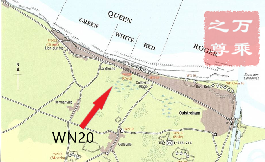 第3步兵師第8旅在劍灘的進攻有點類似于美軍在猶他州的第4步兵師,他們在一條只有兩個營寬的狹長走廊上登陸,但因此集中了全部兵力對付一個據(jù)點。第一艘登陸艇在WN20據(jù)點以西登陸,這個據(jù)點一門88毫米炮以及三門50毫米基座炮。英國步兵以快的速度越過海灘,以避開對海岸線的猛烈炮火。在鐵絲網(wǎng)被突破后,WN20據(jù)點遭到了由第13 /18驃騎兵的DD坦克支持的兩個營的部隊的攻擊,經(jīng)過近3個小時的戰(zhàn)斗被擊敗。防御中心部分被擊潰后,海灘上的德軍基本上被消滅了,但海灘仍然受到分散的狙擊手、迫擊炮和大炮的攻擊。劍灘上的防御體系雖然沒有完全被征服,但已被徹底擊破,第185旅在前往卡昂的途中,遇到了兩個主要的防御區(qū),代號為莫里斯的WN16 炮兵陣地以及代號希爾曼的736擲彈兵團WN17據(jù)點,當天下午,第一批英軍成員行進穿過據(jù)點射程范圍內(nèi)的田野,150人死于機槍射擊。英國人花了一整天的時間才占領WN17。