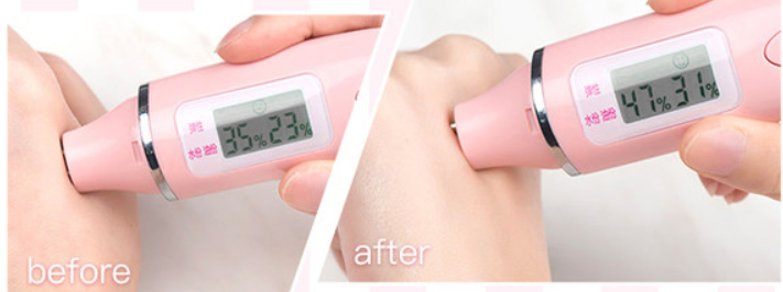 我們對(duì)涂噴霧前后的手做了水分檢測(cè),使用后水分上升20%,干皮妹子的福音~