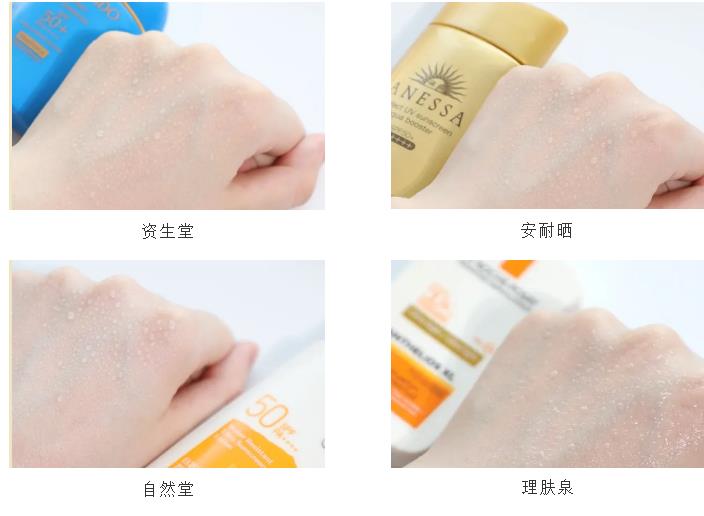 這幾款防曬都屬于乳霜狀,流動性中等,水潤度很足,不過珀萊雅的香精味有點。