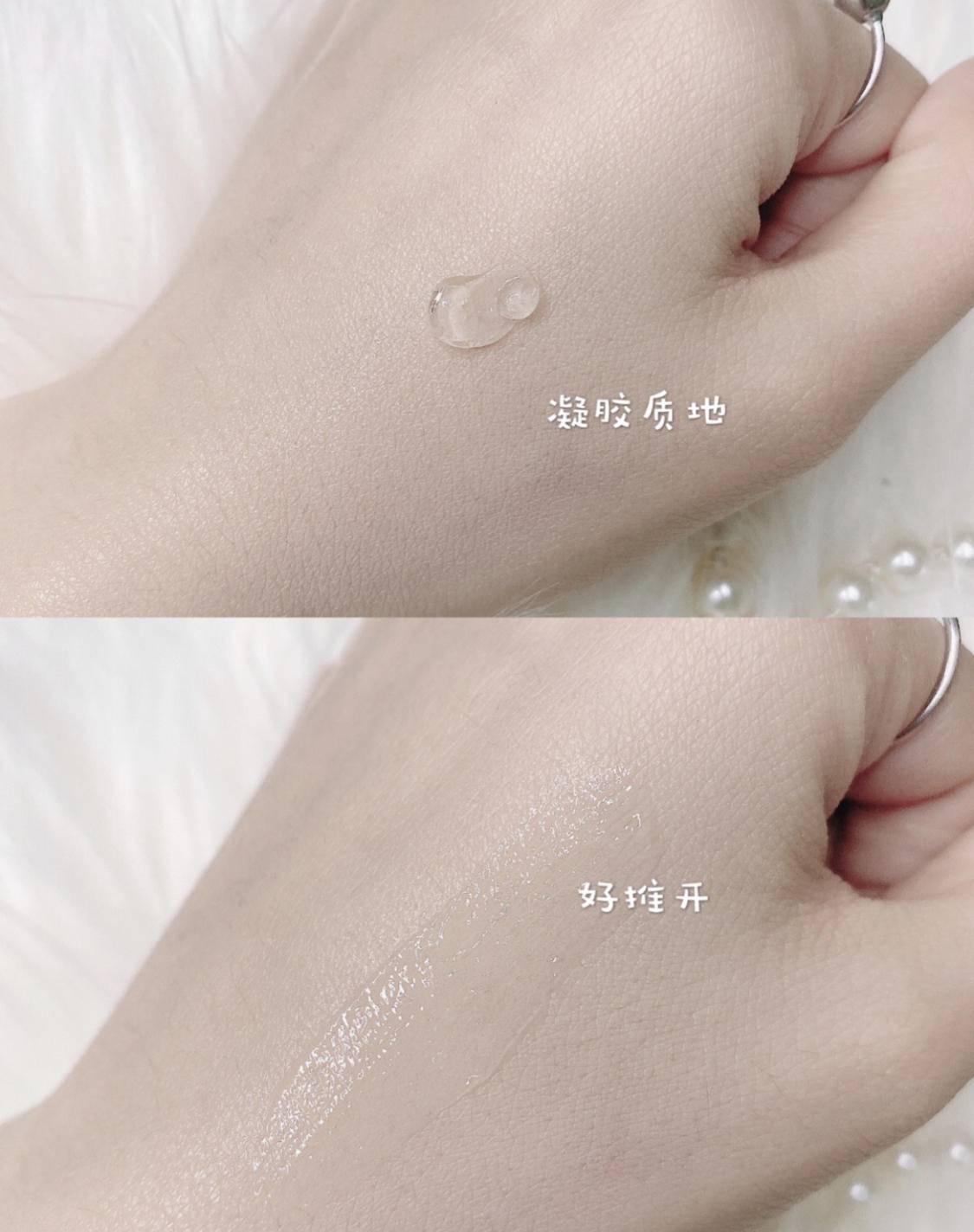 質(zhì)地是透明的水狀質(zhì)地,稍微有些粘稠感,在爽膚水后薄薄涂一層,吸收較快,破損的皮膚處會(huì)有一過性刺痛感,角質(zhì)層健康的部位無刺痛感。