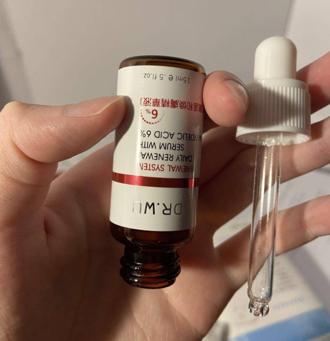 從滴管擠出,是無色透明的液體精華,質(zhì)地很輕薄。我聞了聞,味道淡淡的,但既不是杏仁味也不是酸味。