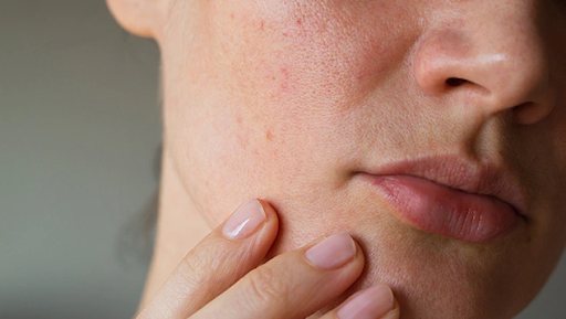 表面看上去,毛孔呈「張開」的狀態(tài),孔孔可見,雖然觸摸起來并沒有特別的「凹陷」,但看上去也像地雷密集轟炸過的飽經(jīng)滄桑的大地。