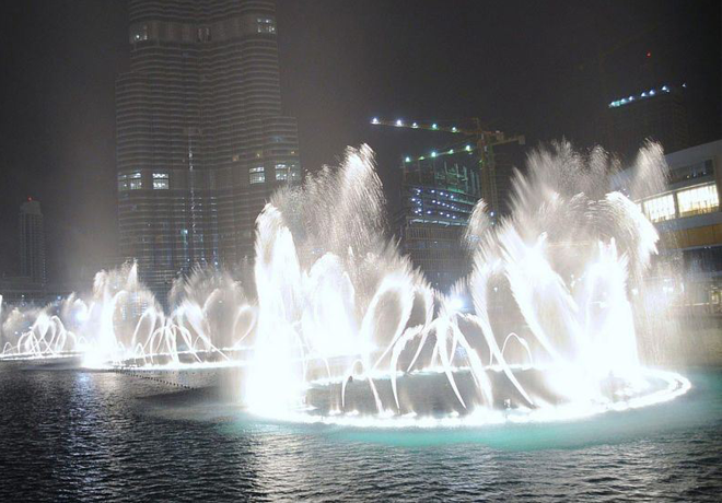 平時咱們見的噴泉,也就是個球或上噴,而迪拜噴泉就在哈利法塔旁邊,是目前世界上大、高的音樂噴泉。到了晚上,噴起來特別的漂亮,一個是形狀多,另一個就是帶顏色。需要提前一個半小時來,不然人太多,不然找不到好位置就看不到。