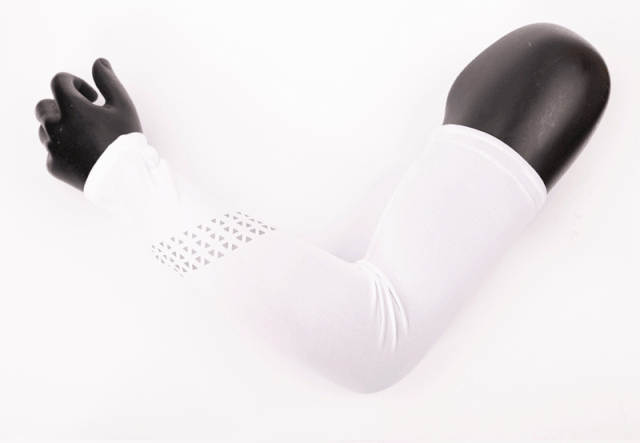 之所以能起到降溫、冷感的效果,當然離不開冰袖采用了進口冷感聚酯纖維面料。