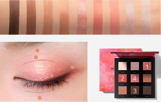 雖然叫白桃,但它還融合了基本打底色和大地色,可以自行搭配變化出不用眼影色彩。