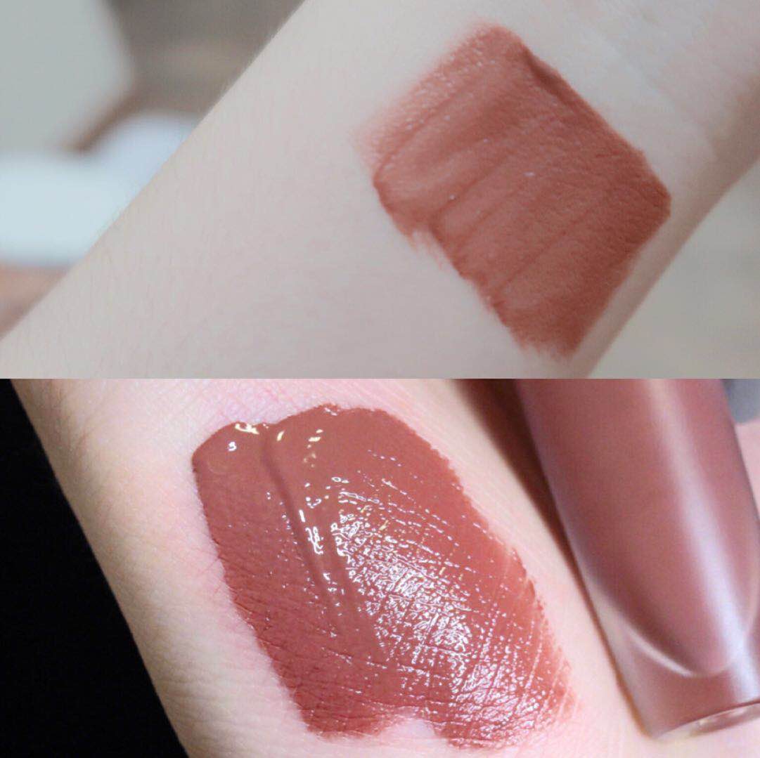 蠻特別的顏色,也是我第一次嘗試這種土棕色系,我覺得比較適合帶妝的情況,素顏會(huì)有點(diǎn)不顯氣色哦,適合白皮妹子。顯色度和持久度都在中等水平。