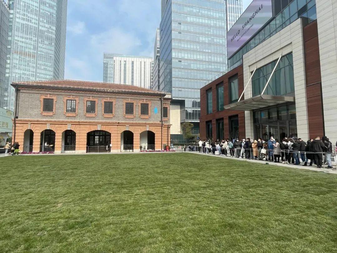 外墻一個(gè)偌大的藍(lán)瓶子logo,倒是醒目得有些張揚(yáng)。其別具一格的裝修風(fēng)格下,排著長(zhǎng)龍,屢屢引爆社交媒體的傳播。