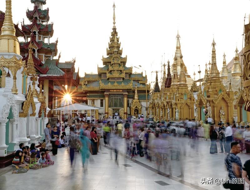 金碧輝煌的仰光大金塔,與印度尼西亞的婆羅浮屠塔、柬埔寨的吳哥窟一起被稱為東方藝術的瑰寶,是馳名世界的佛塔,也是緬甸的象征。