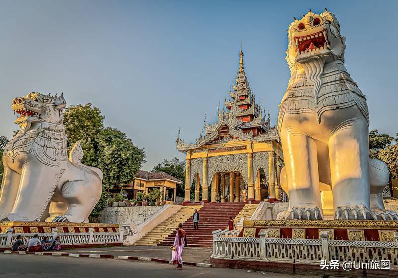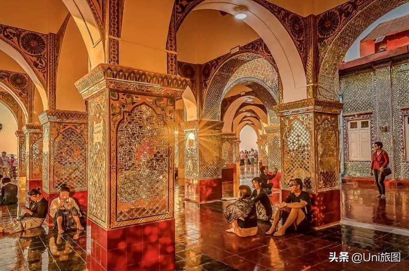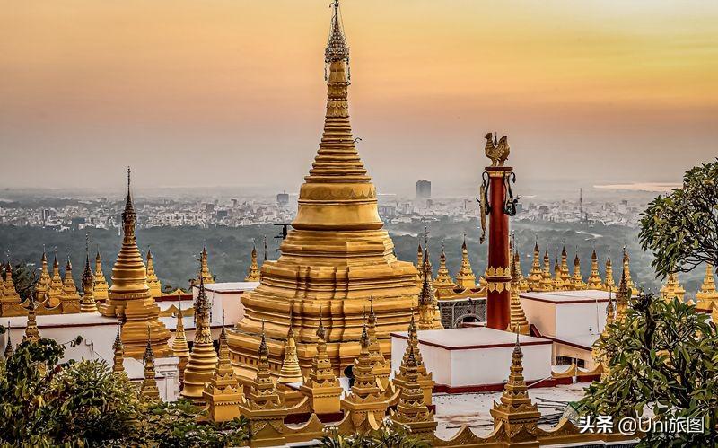 緬甸曼德勒山,山頂上的斯塔溫皮佛塔,波斯風情的玻璃鑲嵌圖案在夕陽下耀眼奪目。傳說佛祖2000多年前曾率眾弟子在此宣講佛法,“有仙則靈”之山因此成為佛教圣地,曼德勒城也因此得名。