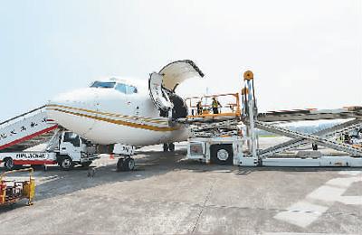 8月20日,一架B737中國(guó)郵政國(guó)際貨郵航班從浙江義烏機(jī)場(chǎng)直飛日本大阪關(guān)西機(jī)場(chǎng),由此標(biāo)志著中國(guó)郵政“義烏-大阪”國(guó)際貨郵航線首航成功。 龔獻(xiàn)明攝(人民圖片)