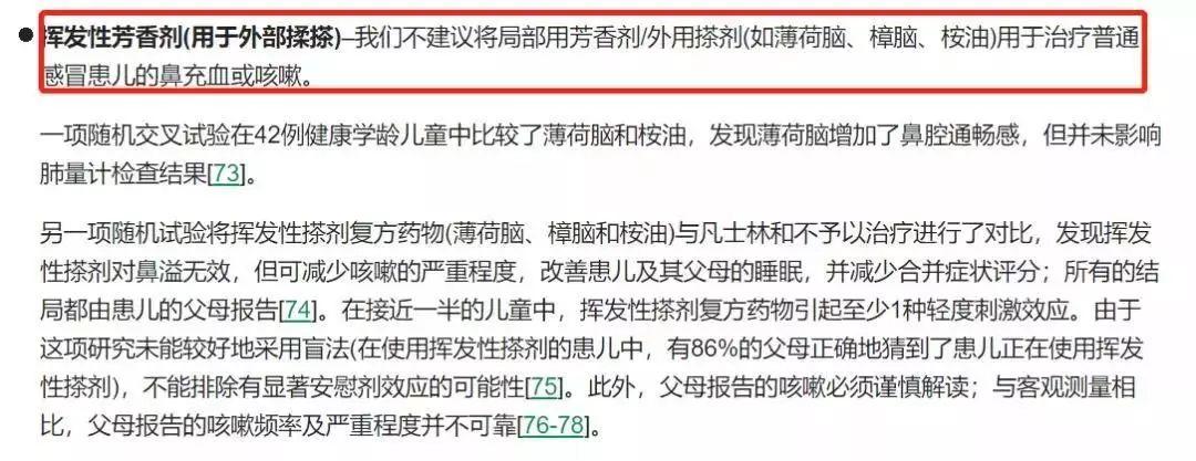 除了圖片中所提及的不推薦原因外,還有一種原因是因為薄荷腦產(chǎn)品對神經(jīng)系統(tǒng)有抑制作用,2歲以下嬰幼兒的嚴(yán)重不良反應(yīng)報告較多,除了風(fēng)油精,其他含有薄荷腦的復(fù)方爐甘石洗劑、清涼油、無比滴等也應(yīng)當(dāng)避免使用。