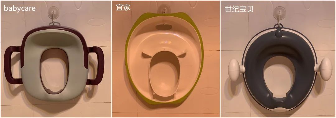 6款普通坐便圈中,babycare、宜家、世紀寶貝,均設計了掛孔,專門用于懸掛。寶寶方便后,將坐便圈取下,再掛到墻上的掛鉤上即可,收納方便,節(jié)省空間。