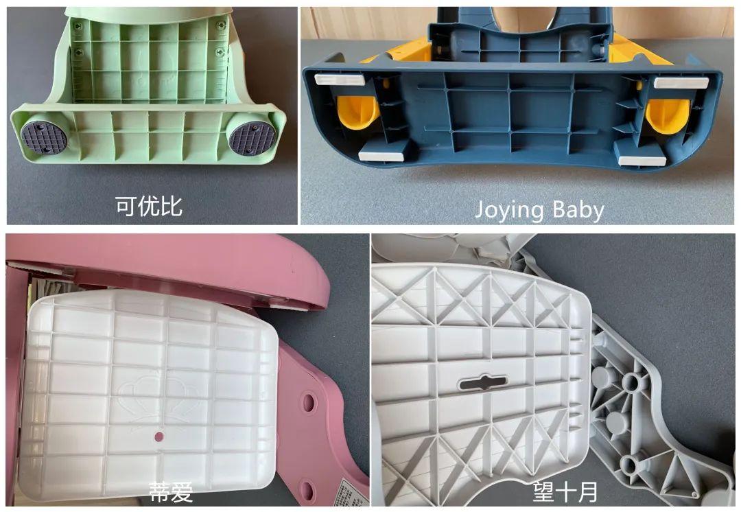 其中,世紀寶貝、babycare、宜家,在底部邊緣設計了一整圈的防滑條,面積大,能夠起到的防滑及穩(wěn)固效果較好。