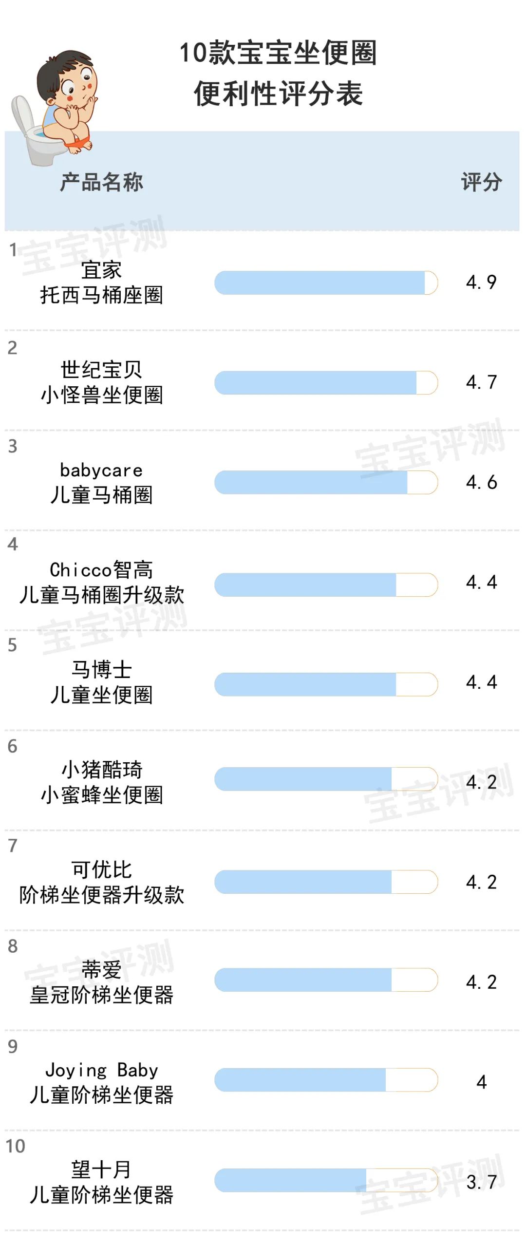 綜上,10款寶寶坐便圈的便利性評分如下: