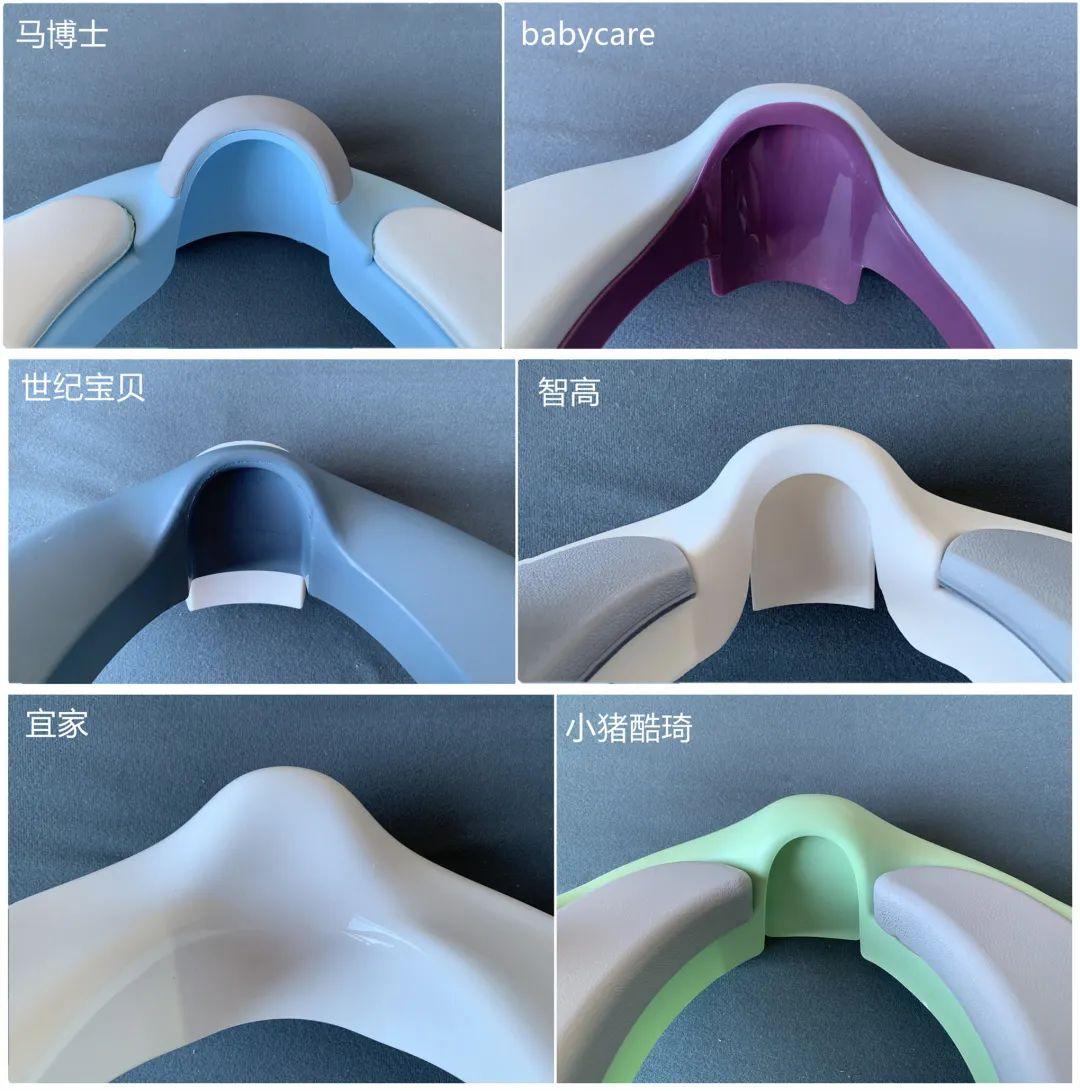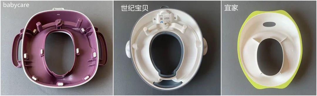10款寶寶坐便圈中,世紀寶貝、babycare、宜家,靠背設計帶有一定的曲線弧度,更符合人體工學,與寶寶背部的貼合度更高。其中,宜家的靠背略短了些,世紀寶貝和babycare的靠背舒適性較好。