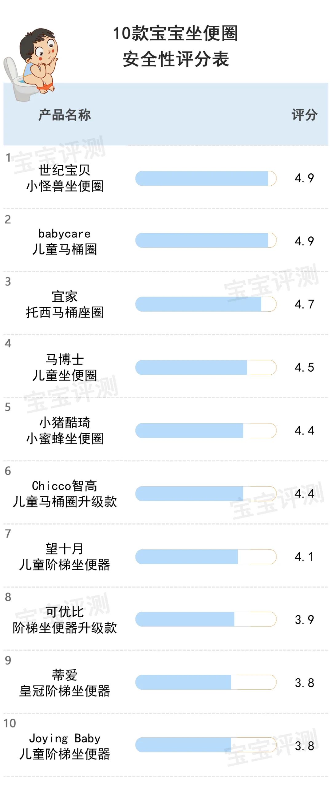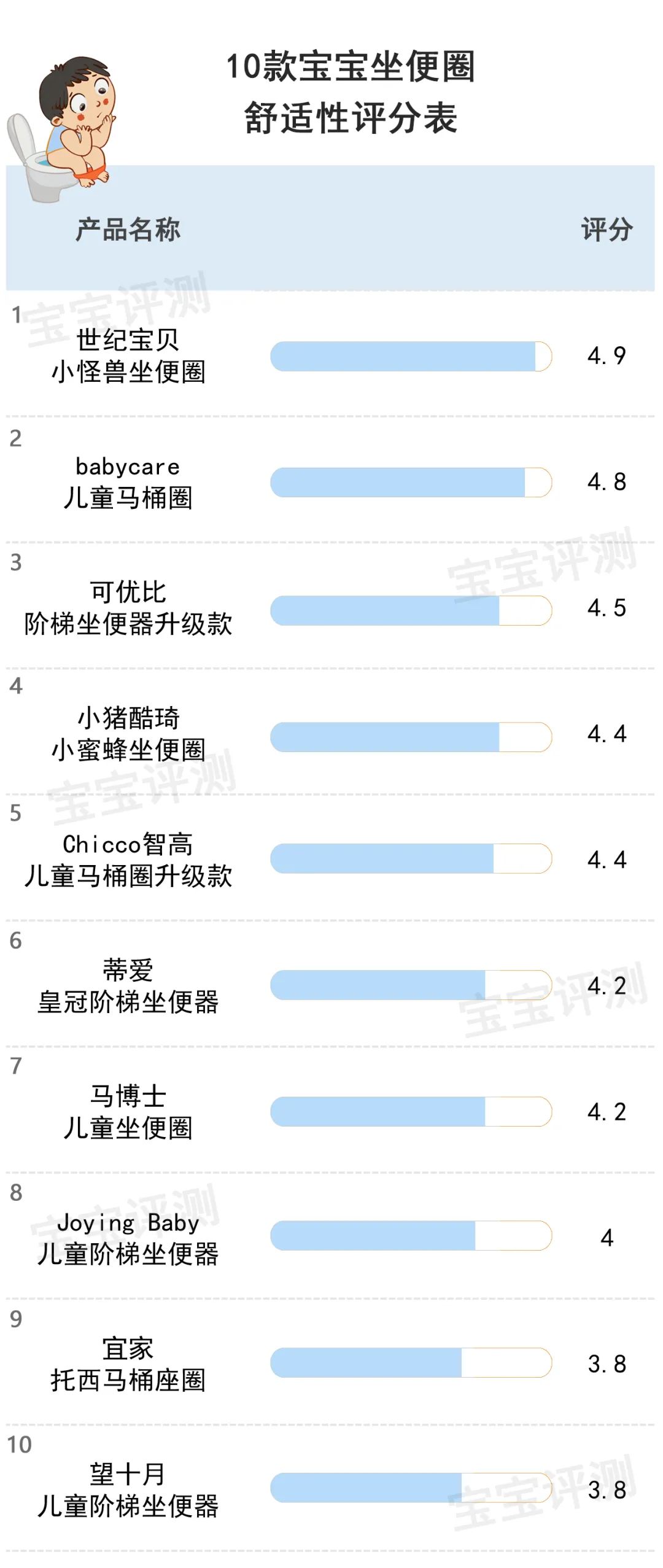 綜上,10款寶寶坐便圈的舒適性評分如下: