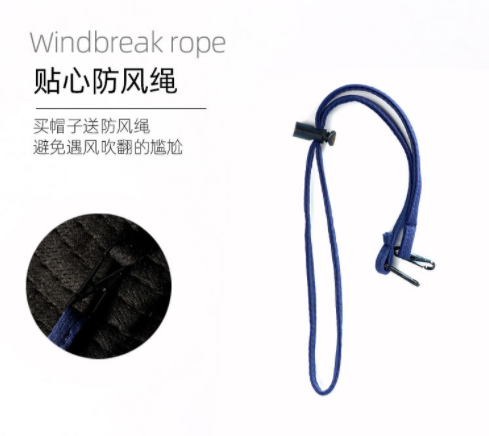 考慮到出門騎車或者風(fēng)大的情況,漁夫帽還額外贈送貼心的防風(fēng)繩,防止帽子被吹跑。