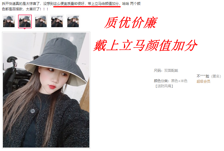 重點(diǎn)是價格太讓人心動了,一頂僅39元,2頂才只要59元,買來送閨蜜、送男友、送媽媽都是合適的~