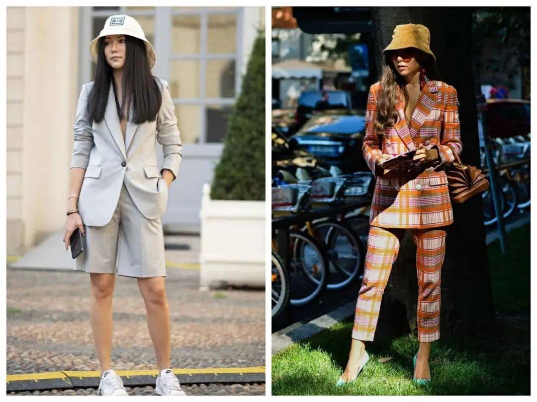 漁夫帽+西裝原本就酷颯的西裝有了漁夫帽的加持后,可鹽可甜,時髦指數(shù)蹭蹭上漲。