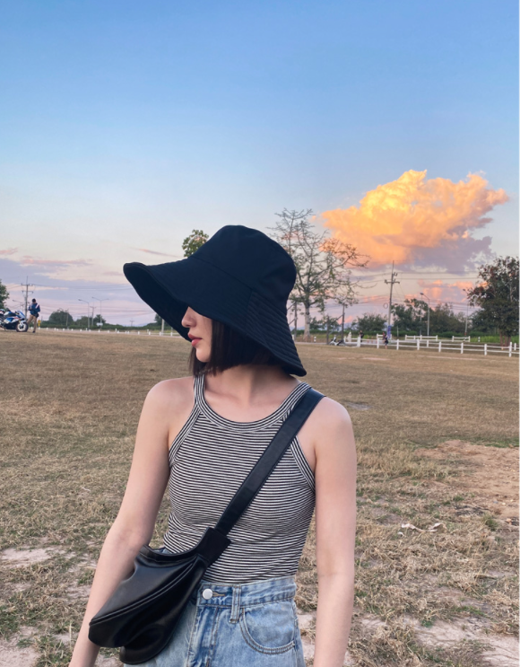 背著漁夫帽還有更高階的戴法,就是把帽子背在后背。雖然臉部防曬是做不到了,但是凹造型倒是別有一番韻味。